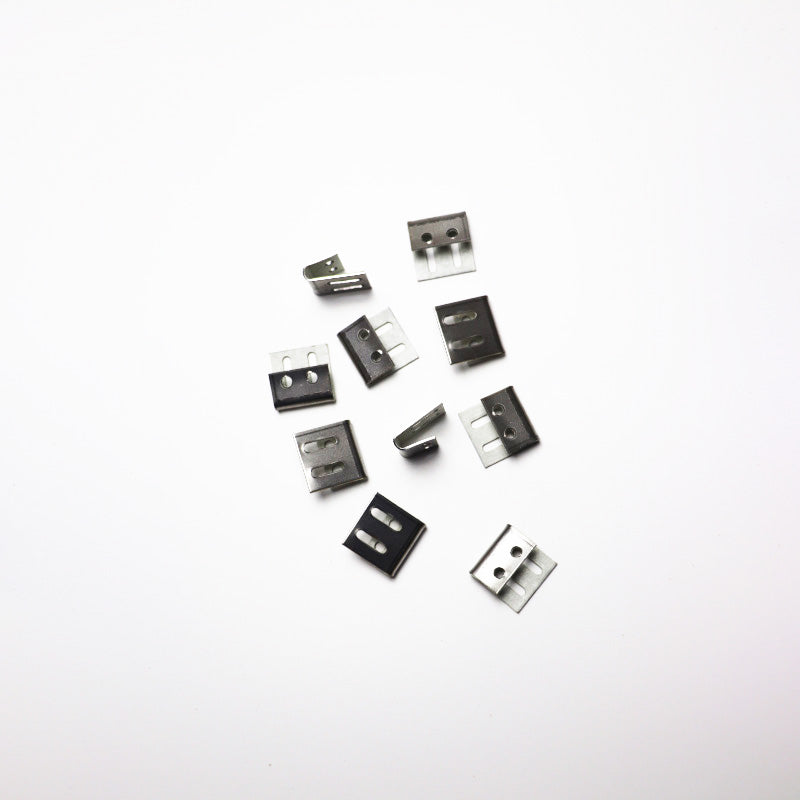 Handy's 7/8" wide zig Zag Clips are fully paper lined that resist spring abrasion. Heavy steel construction keeps clips from opening when springs are in tension. Secure the clips from any angle. They hold Zig zag springs of any gauge permanently. Use the universal SS Clips with a staple gun for back and seat construction. Use fully lined solid steel BW Clips to attach Zigzag, edge and torsion springs to any gauge of border and edge wires. 7/8" * 1/2" plasticized lining resists spring abrasion. closing pilers available. The G Clip allows the spring to drop 7/8" below the rail top. Fasten the clip to the top and inside of the rail with nails or staples. The Universal four-holes EK-Clip is used for back and seat construction. Use either one or two nails on the lips.