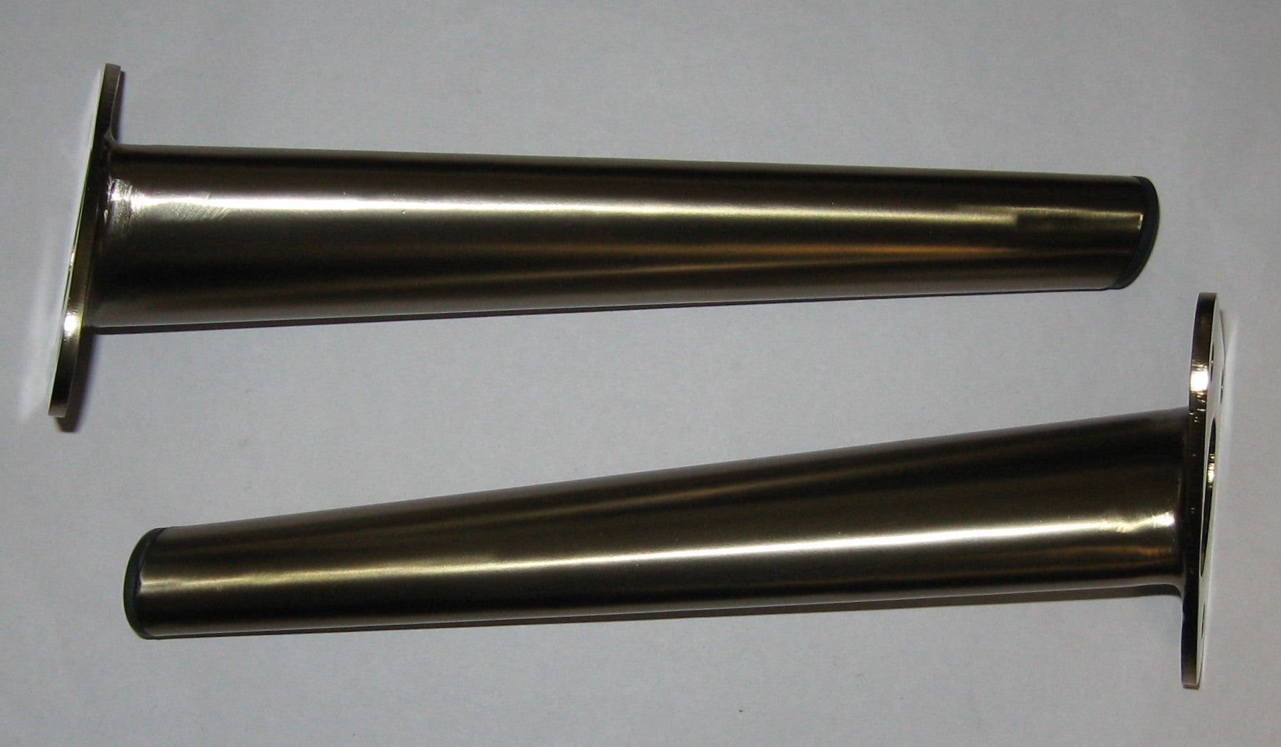 Enhance your furniture with these sleek steel legs, available in 3-inch and 9-inch heights to suit a variety of projects. Featuring a modern tapered design, they come in gold, nickel, silver, or clear finishes to complement any style. Each order includes 40 legs, along with all necessary mounting hardware and hex keys for quick and easy installation.